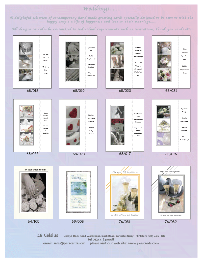 We can also customise all our designs to supply unique wedding stationary, including invitations, order of service, thank you cards, menus, place names, keep sake albums.